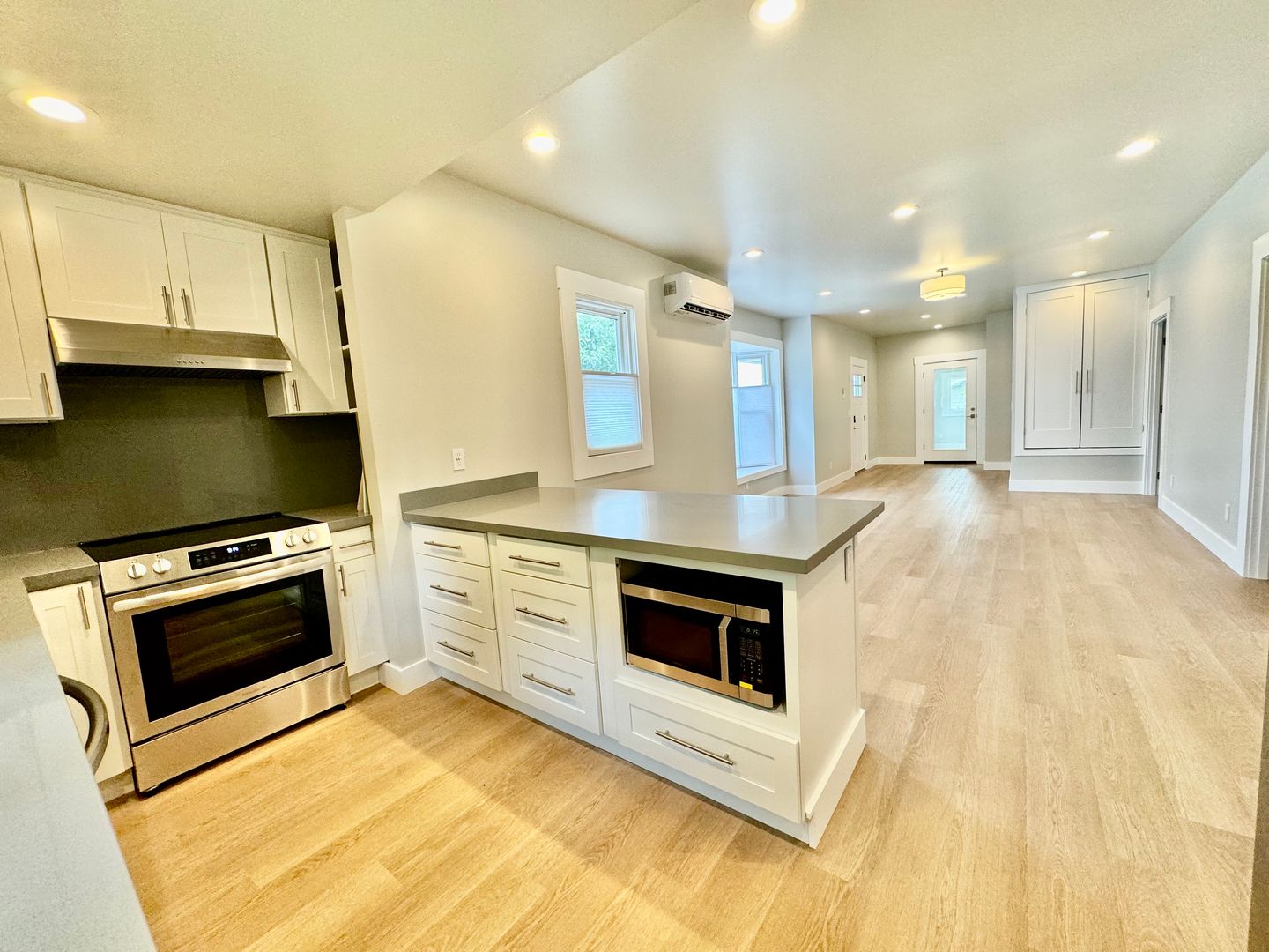 Half-off first month's rent if rented before 12/1!!! Introducing the Seward Park fully renovated 4 bedroom, 3 bath home in Seattle, WA. This must-see property boasts a complete renovation with modern finishes throughout. Enjoy the convenience of ample parking, including an EV charging station, and yard space. Inside, you'll find hardwood floors, stainless steel appliances, quartz countertops, and mini splits for efficient heating and cooling. The bonus office space and master suite provide added comfort and functionality. With a washer/dryer included, this home offers everything you need for easy living. Located close to shopping, restaurants, and bus lines, this home is perfect for those looking for a convenient and stylish living space in Seattle. Schedule a showing today to experience all that this renovated home has to offer.