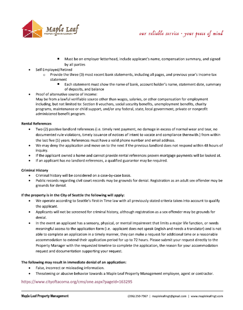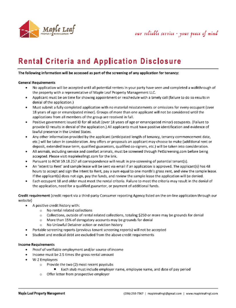 - View our Rental Criterion and Application Disclosure at http://mapleleafmgt.com/