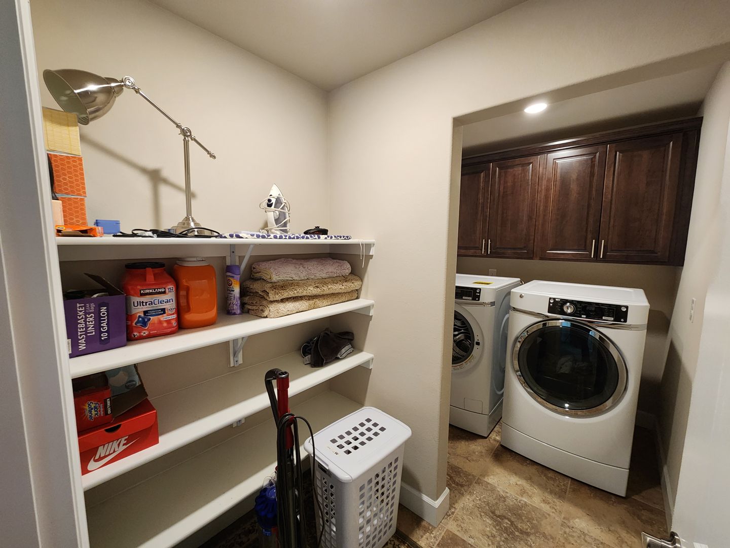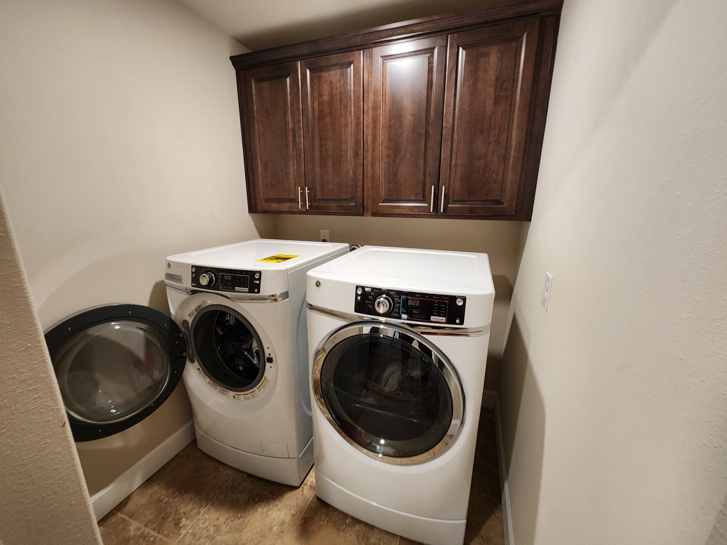 Massive upstairs owners' retreat with 5pc en-suite bath & walk-in closet. You’ll find a spacious loft, 2 other generous bedrooms, a 3rd full bath, and a spacious laundry room with tons of cabinetry and folding counter upstairs. Long driveway perfect for extra parking. Fully fenced backyard.