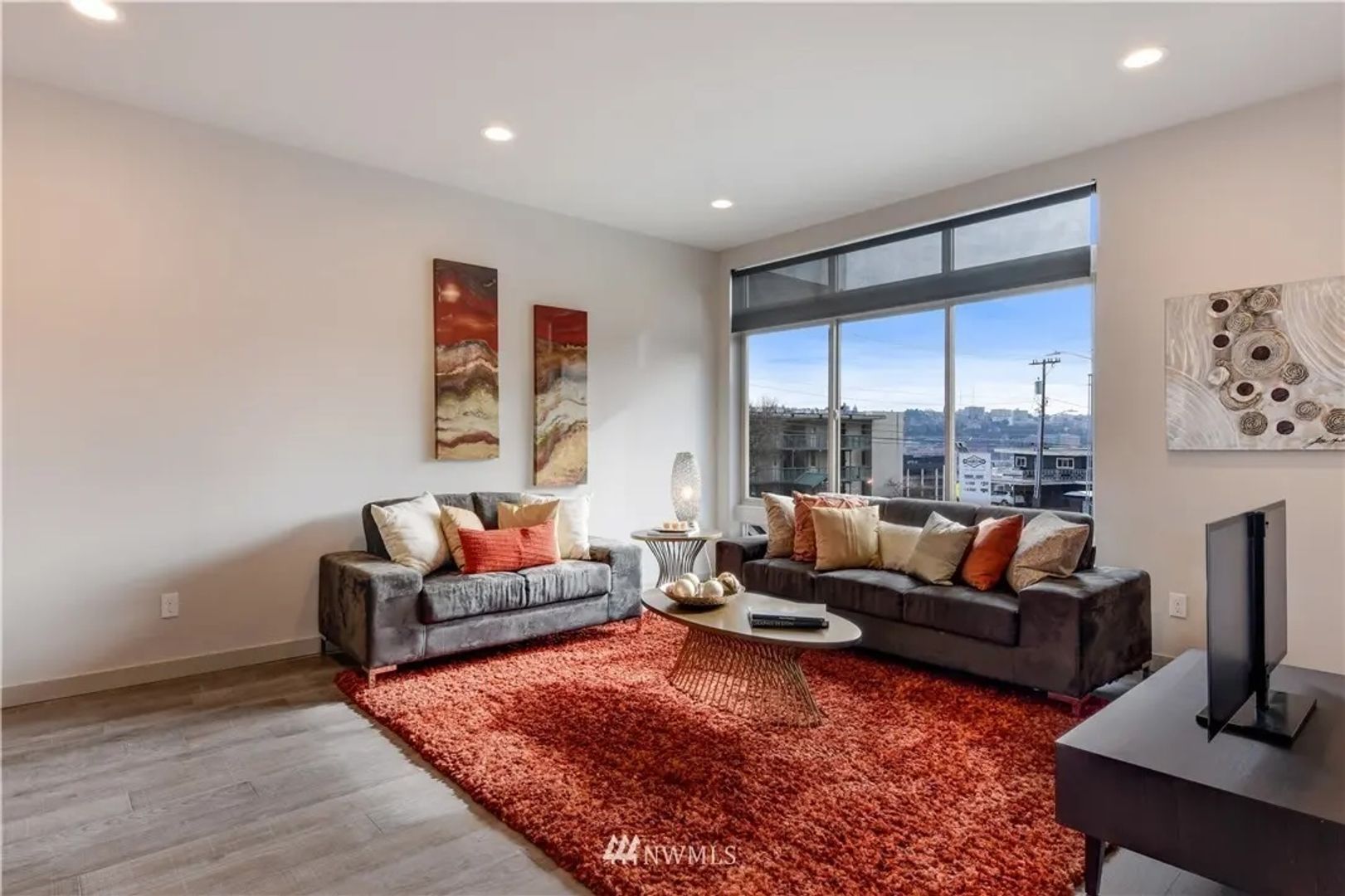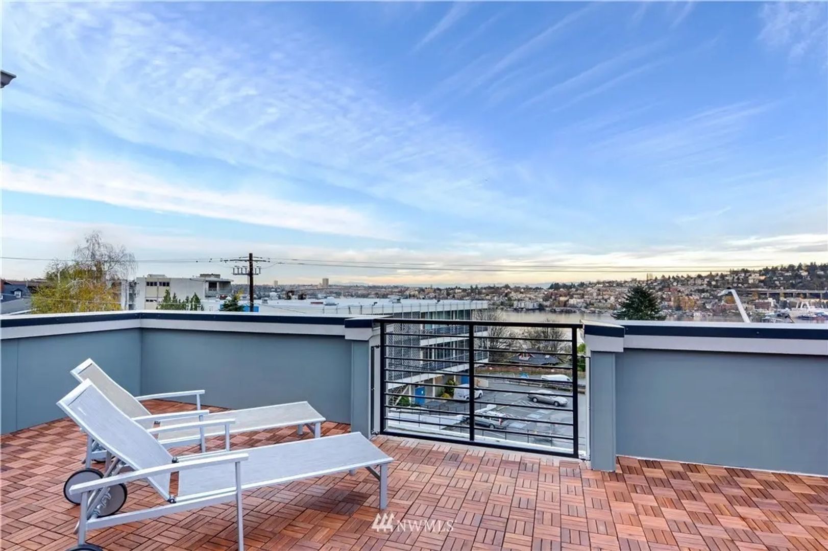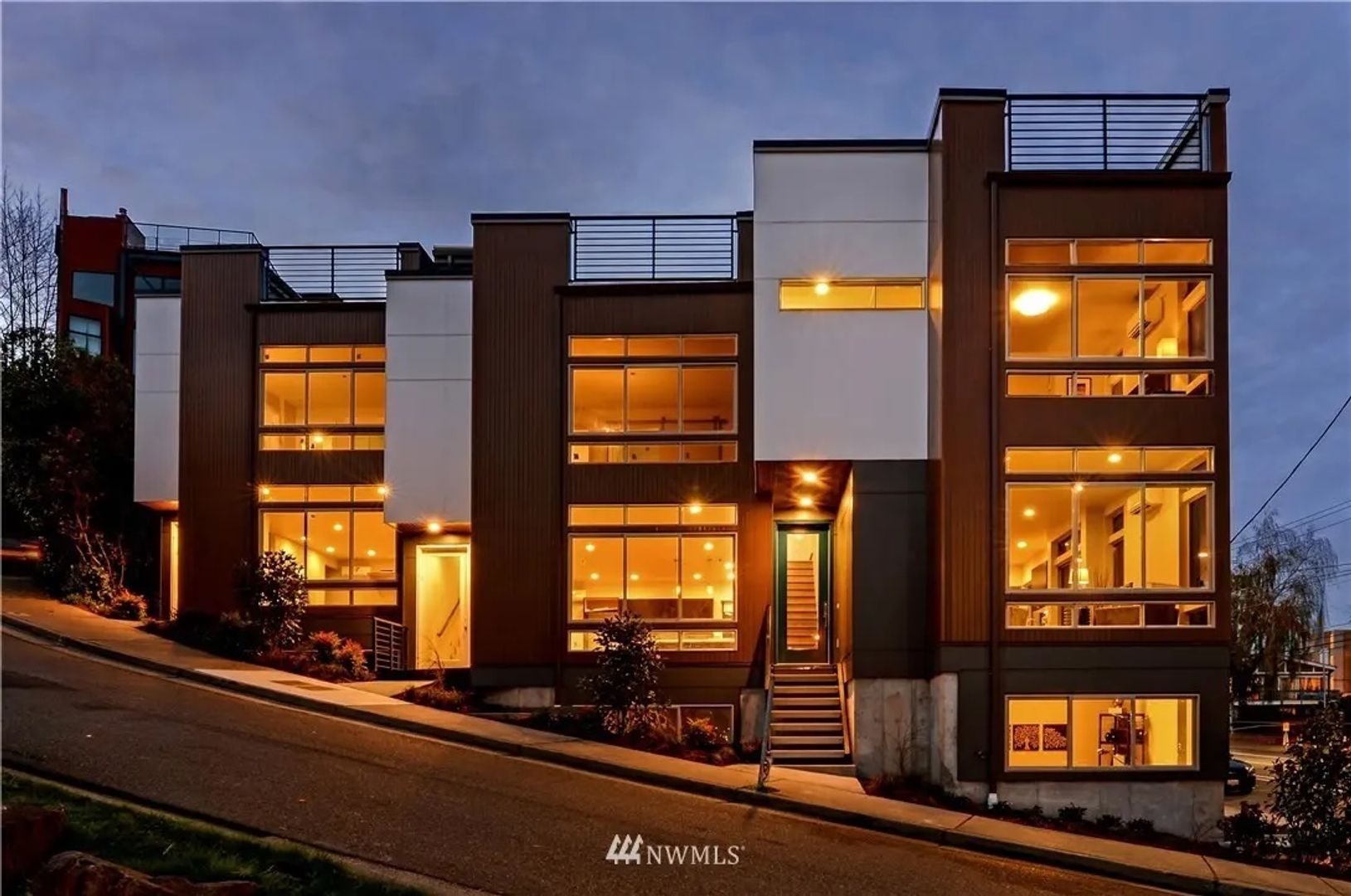 What an incredible display of modern design with inspiring lake and skyline views! This certified 4-Star Built Green end unit townhouse offers the best of urban living just moments from South Lake Union, with light-filled spaces and views captured from nearly every floor. Floor-to-ceiling windows, stunning hardwoods, designer finishes, ductless heating/AC, and a spacious rooftop deck set the tone for elevated city living.
