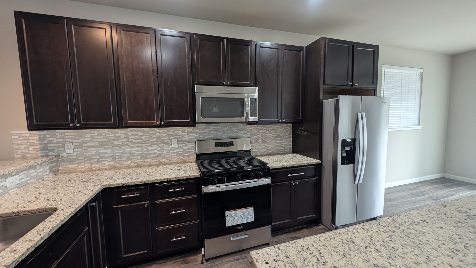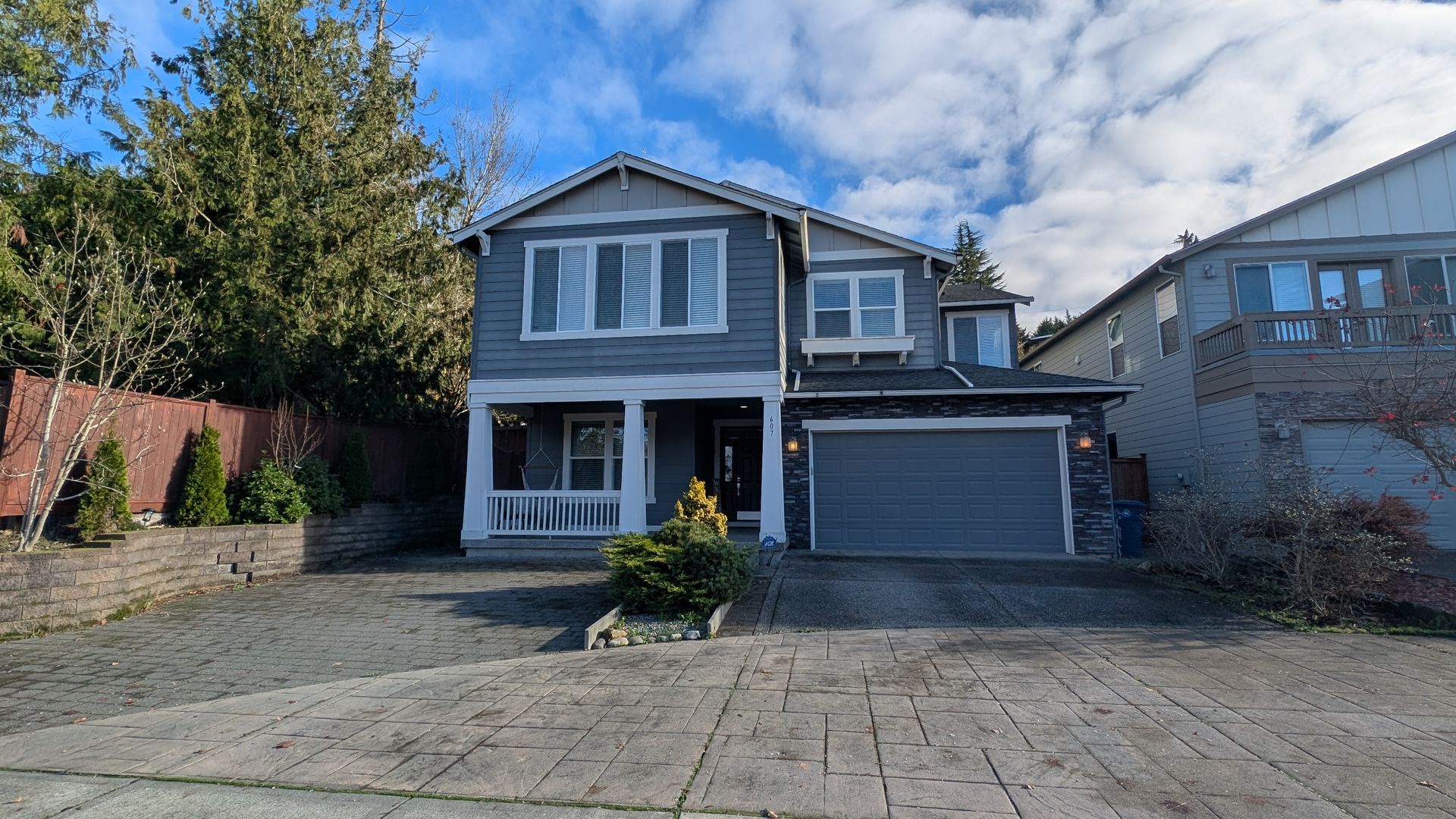 Spacious and UNIQUE two-story home located on a dead-end street in Sonterra neighborhood. Entry from large covered from porch into an open foyer. Main floor includes family room with built-in shelving with seated bench area and 2 bedrooms (one bedroom has an attached 3/4 bath). Walk upstairs to a huge open living room with gas fireplace & tons of windows for natural light. Dining room opens to kitchen with granite counters, new gas range/oven, microwave, new refrigerator and kitchen island with eating bar opens to dining area & bonus room with oversized sliding doors to patio & backyard. Primary suite with sliders to patio/backyard, 2 closets (one walk-in) and private 5-piece ensuite with linen closet. Laundry room with full size washer/dryer and folding counter. Full bathroom and additional bedroom. New carpet in all bedrooms and living room. 9ft ceilings. Attached 2 car garage plus additional parking in the driveway and paved front yard area. This 2,758 sq.ft. house is located at the end of the dead-end street, in Lake Stevens School District and is ready for you to create new holiday memories. To VIEW this home, Please follow the instructions below.