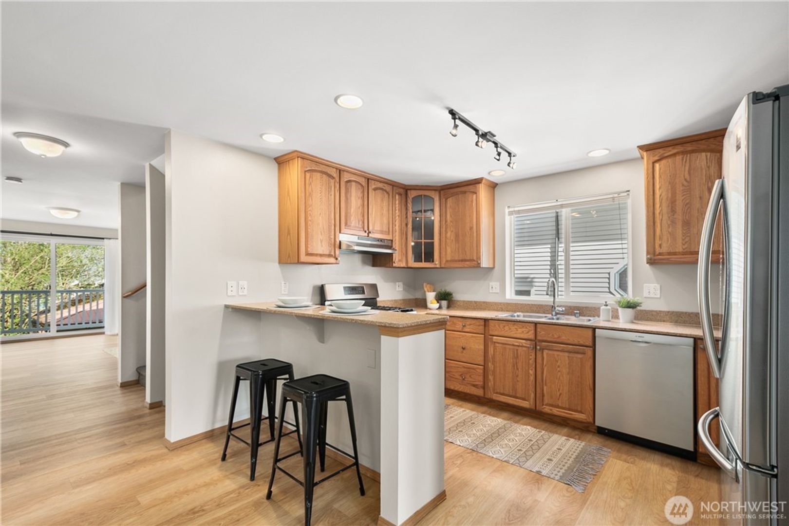 ** Kitchen with gas range and SS appliances