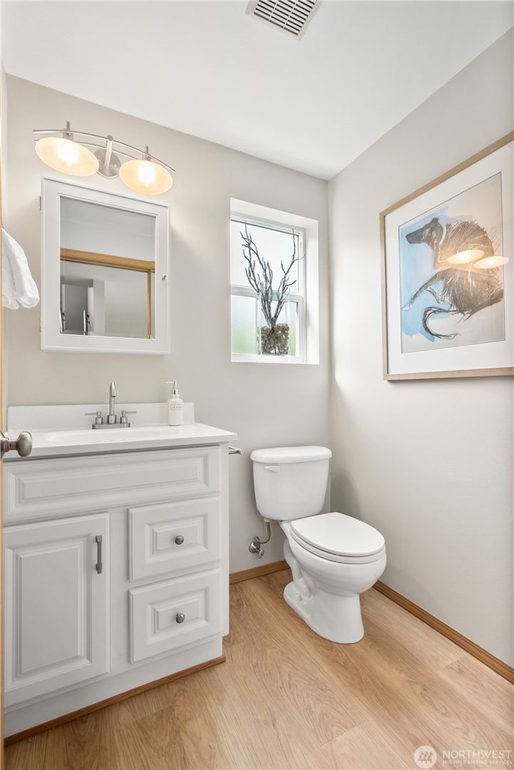 Beautiful 3 level home with amazing natural light in established lower Phinney neighborhood. Phenomenal location, 85 walk & 87 bike score! Walk to restaurants, coffee, parks, schools. Entry level includes bedroom, office, 2 baths & laundry area. Main level has spacious living room with gas fireplace, open kitchen with granite counters, eating bar & newer appliances, dining area, half bath, large family room, pantry & balcony. Upper level has 3 bedrooms and 1 and 3/4 baths, including primary bedroom with 3/4 bath , walk in closet & city view to South, Plus deck and storage room. All interior freshly painted, 2 car garage. Private rear fenced yard w/gazebo & storage shed. Raised beds in front for your garden. A wonderful place to call home.