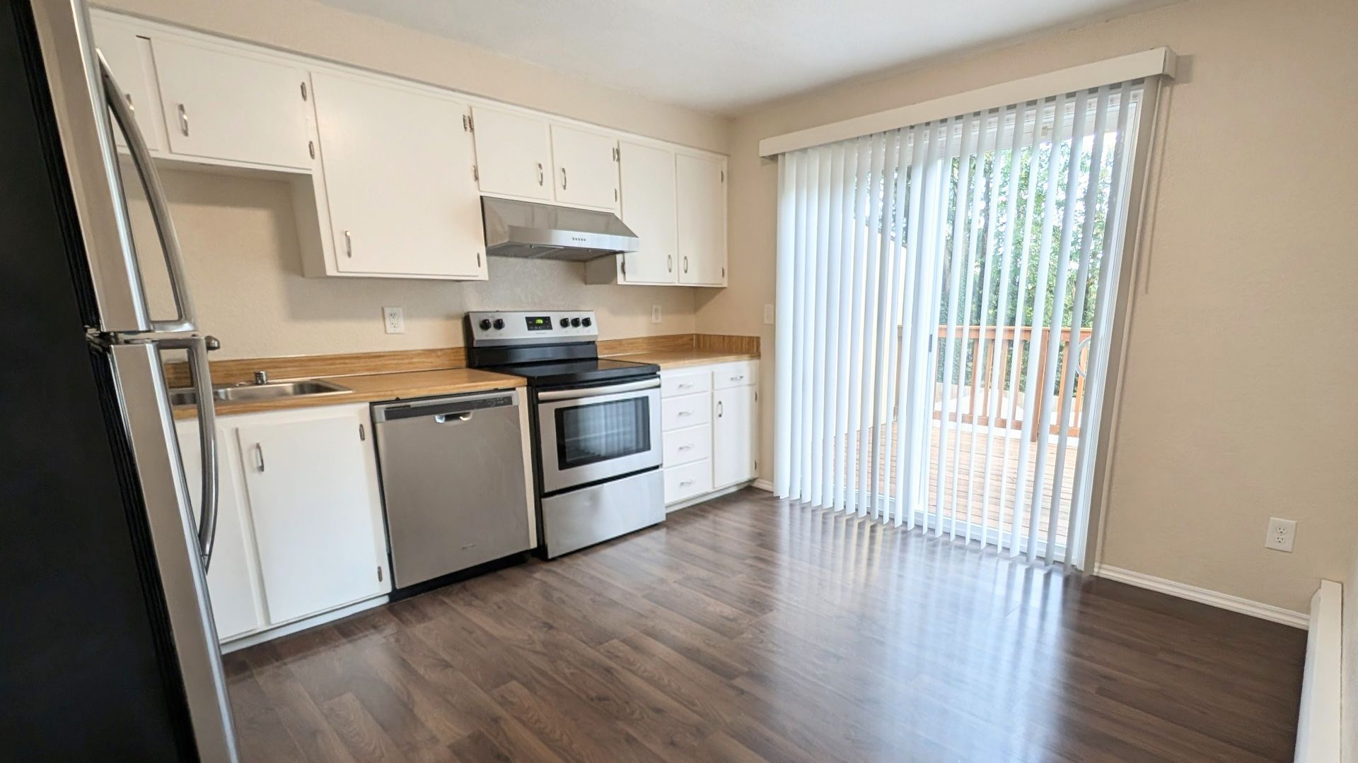 Everett / Eastmont area Updated Townhome Duplex with LARGE fenced private backyard. Spacious living room with large east-facing picture window with mountain & valley views in the fall, winter & early spring. Open kitchen with newer stainless steel appliances, tons of cabinets, sliders to deck & backyard and eating space area for dining table. Half bath. Laundry closet with full-size washer/dryer. New laminate floors. Upstairs you will find 2 bedrooms , full bathroom and linen closet. Large fenced backyard. Detached oversized 1 car garage plus driveway parking for 2 vehicles and off street parking available. Dogs under 40 lbs allowed with petscreening. Close to several amenities including Costco, Park n Ride and 6 miles to Boeing Everett. Easy access to I-5 Freeway. This unit is ready to move in and call it home. To schedule a showing, Please follow the instructions below.