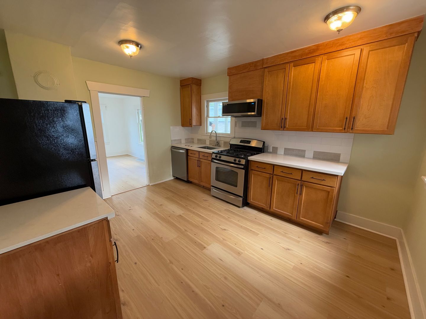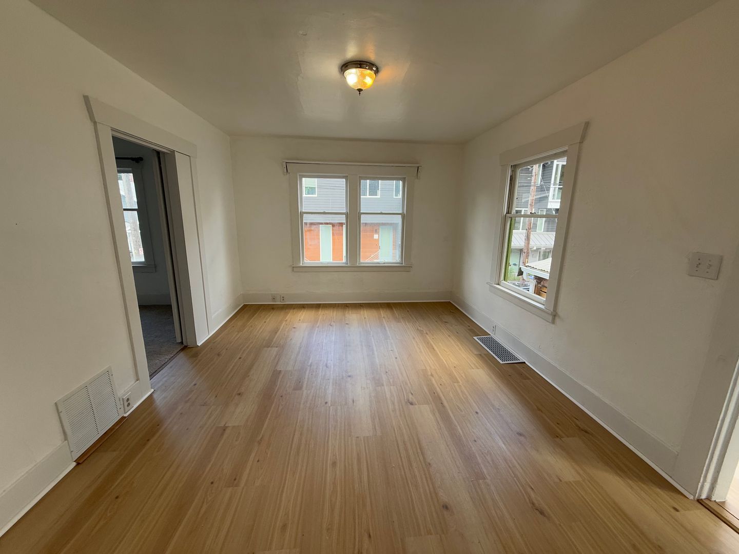 Completely renovated, university district, 2 bed, 2 bath. hardwoods, bus line, walking to everything basement garage ample storage sliding barn door, beautifully renovated bathrooms, small yard,1 car garage. close to greenlake, Must see