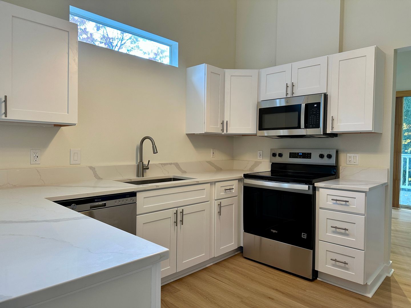 The living space is vast and is bathed in natural light, enhancing the beauty of the LVP flooring throughout.