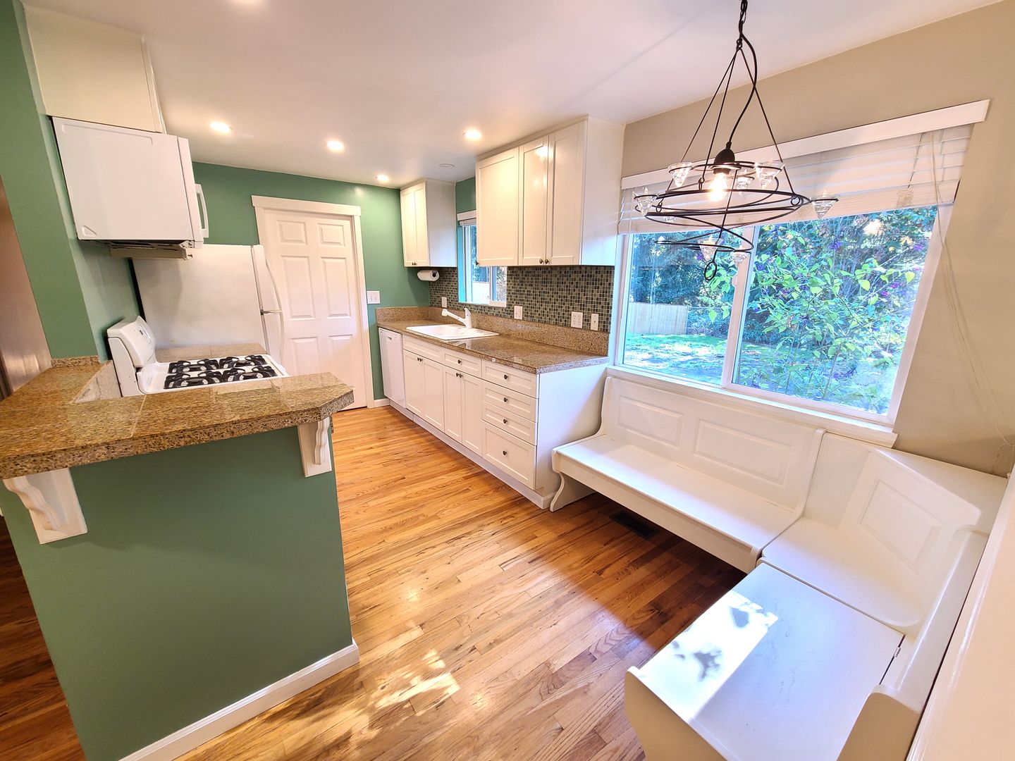 Welcome home to this charming 3 bed, 2 bath Kirkland home on large corner lot in a prime location. Double vanity master bath, kitchen with granite counters & gas stove, plenty of closet space for storage. One bedroom has a murphy bed, which makes it perfect as a guest room/office! Hardwood floors, crown molding, & new paint. Newly leveled upper back yard with new sod. Spacious fenced back yard overlooking green belt. Lower level yard has an area for a fire pit to enjoy smores in the PNW summer. New sliding patio door with access to a large patio makes a great space to relax and grill in the summer. Secure access via keyless entry on the front and back doors. Alexander Graham Bell Elementary School right across the road. Easy and quick access to nature trails, Juanita Beach Park, shopping, Fred Meyer, Gold's Gym (within walking distance). 5 minutes from downtown Kirkland & Lake Washington and Totem Lake Shopping Center!