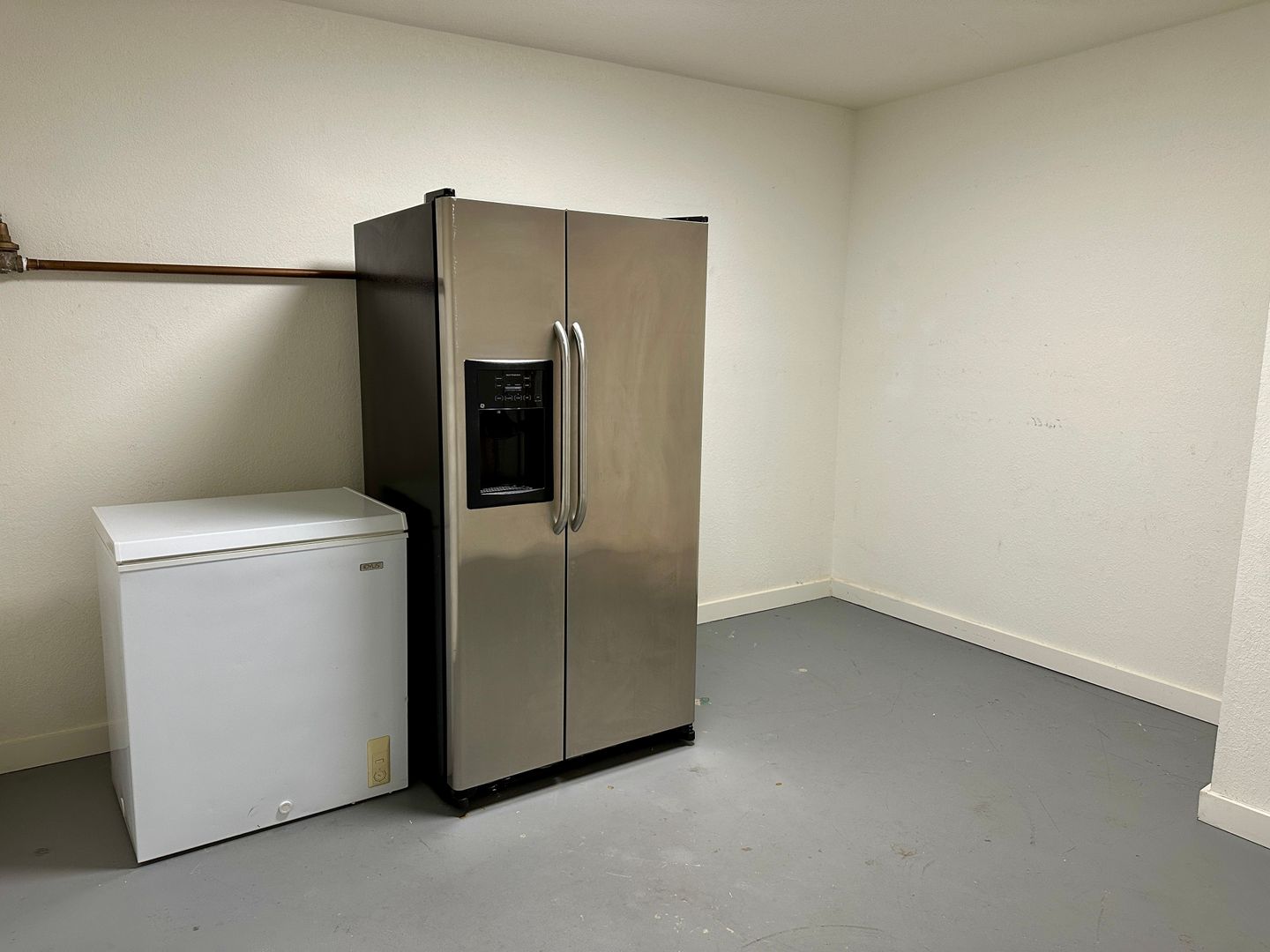A large bonus storage room allows for more than enough space for long term storage. includes freezer, fridge, and wine fridge.