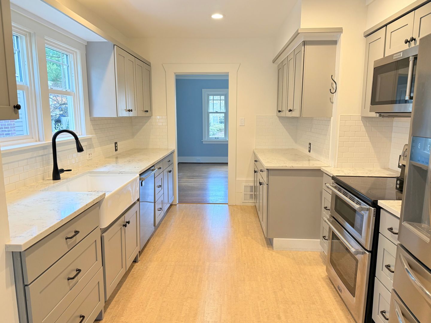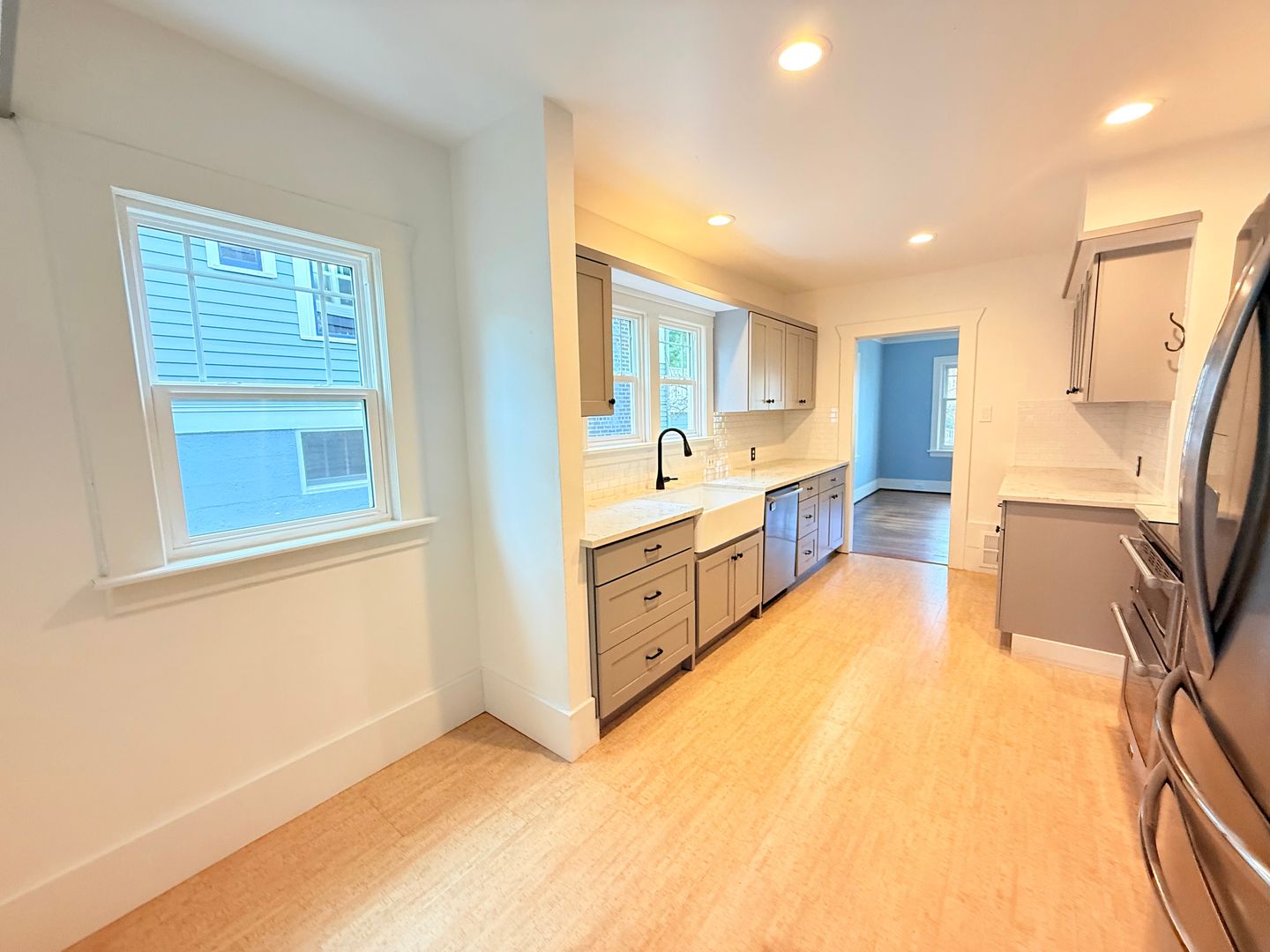 Updated kitchen with stainless appliances, beautiful granite countertops, a large sink, ample storage, and space for a cozy eat‑in breakfast table.