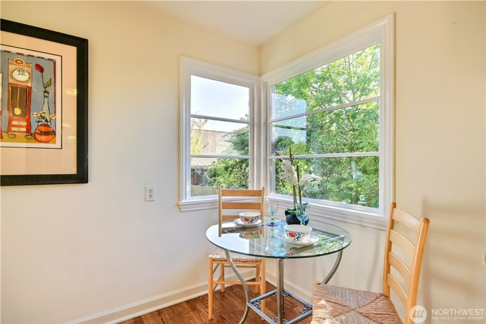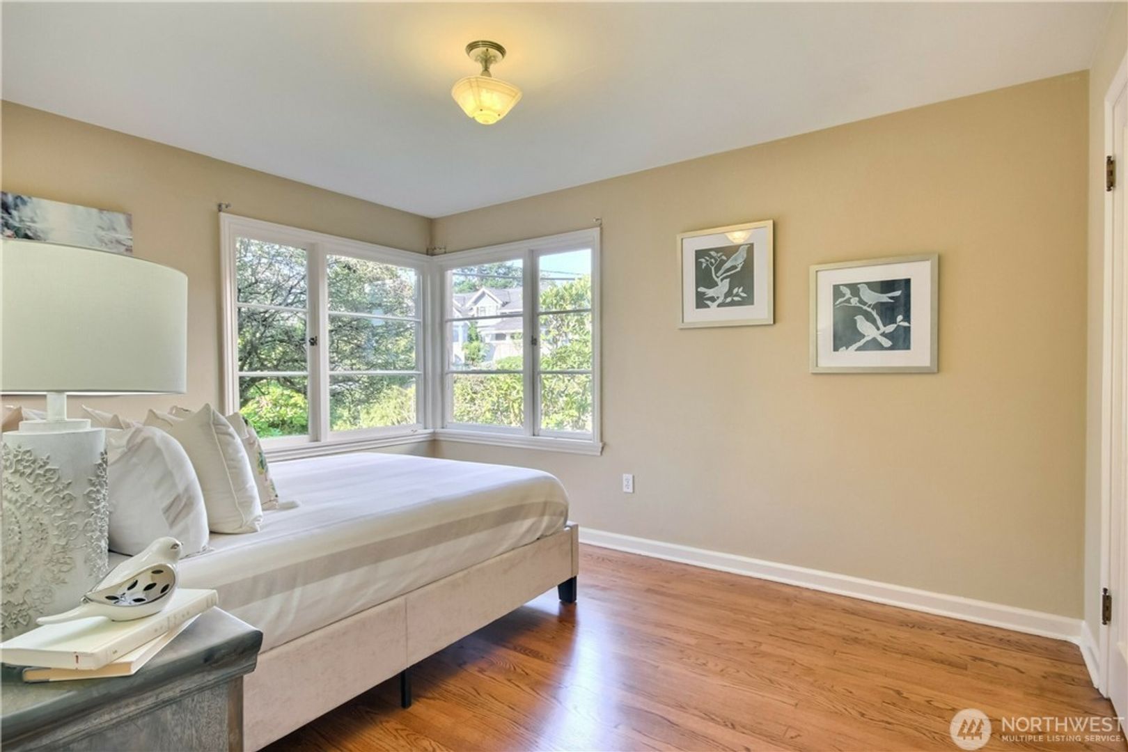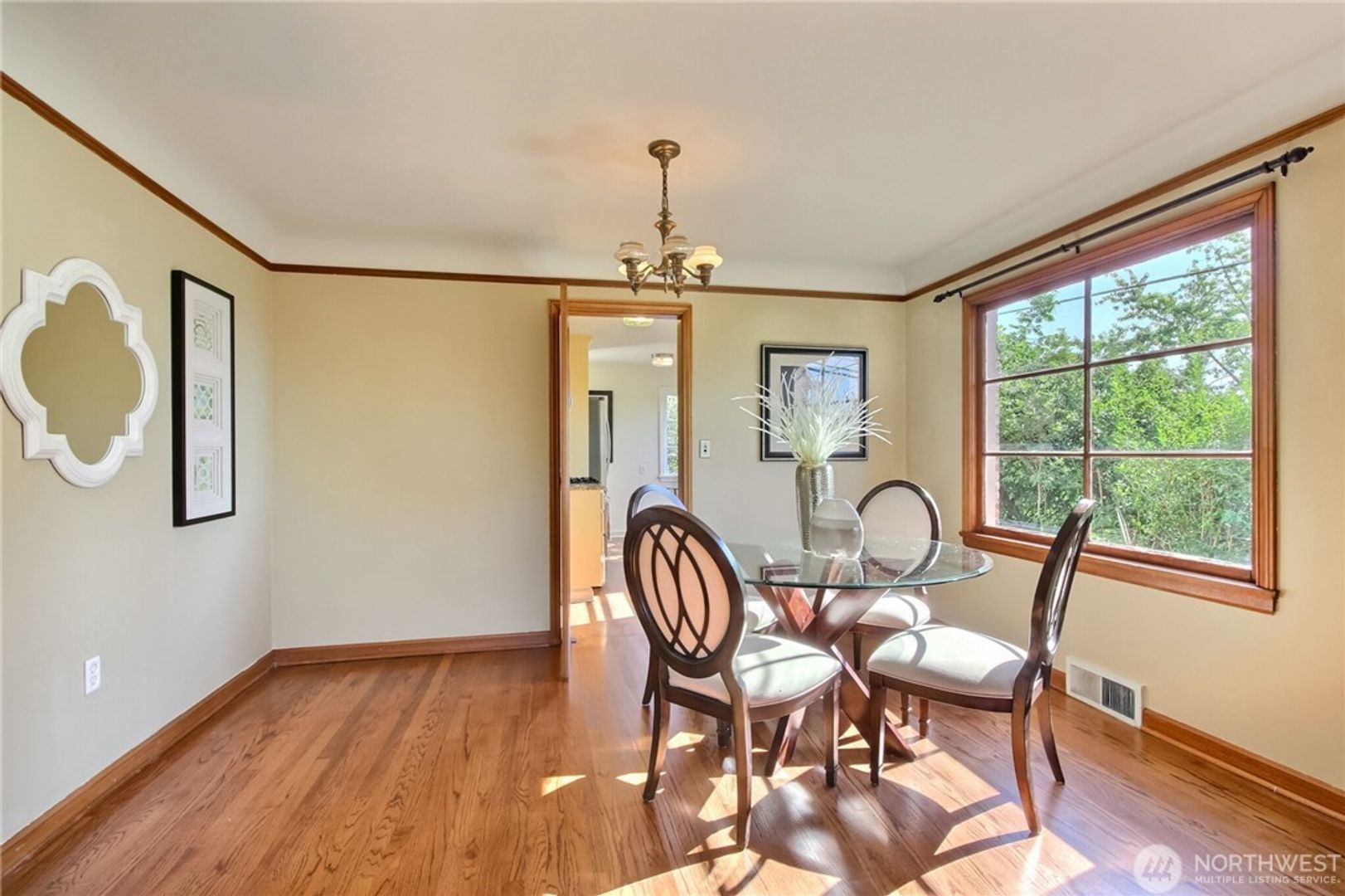 SUNSET HILL Charm w/ VIEWS. Original charm intact w/ many upgrades. Home features formal living & dining room w/ partial Sound and Olympic Mtn view. 3 bedrooms + bonus room, separate basement access, 2 bath, Large media/entertainment room w/ newer carpet, newer interior paint, refinished original hardwood floors, wood fireplace, gas furnace, new tankless water heater, landscaped yard with large new deck in backyard. Enjoy 3 season view from kitchen w/ cozy breakfast nook. 1- car garage with plenty of street parking. Walking distance to local markets, restaurants, the locks & Shilshole Bay Marina and Mins to Golden Gardens.